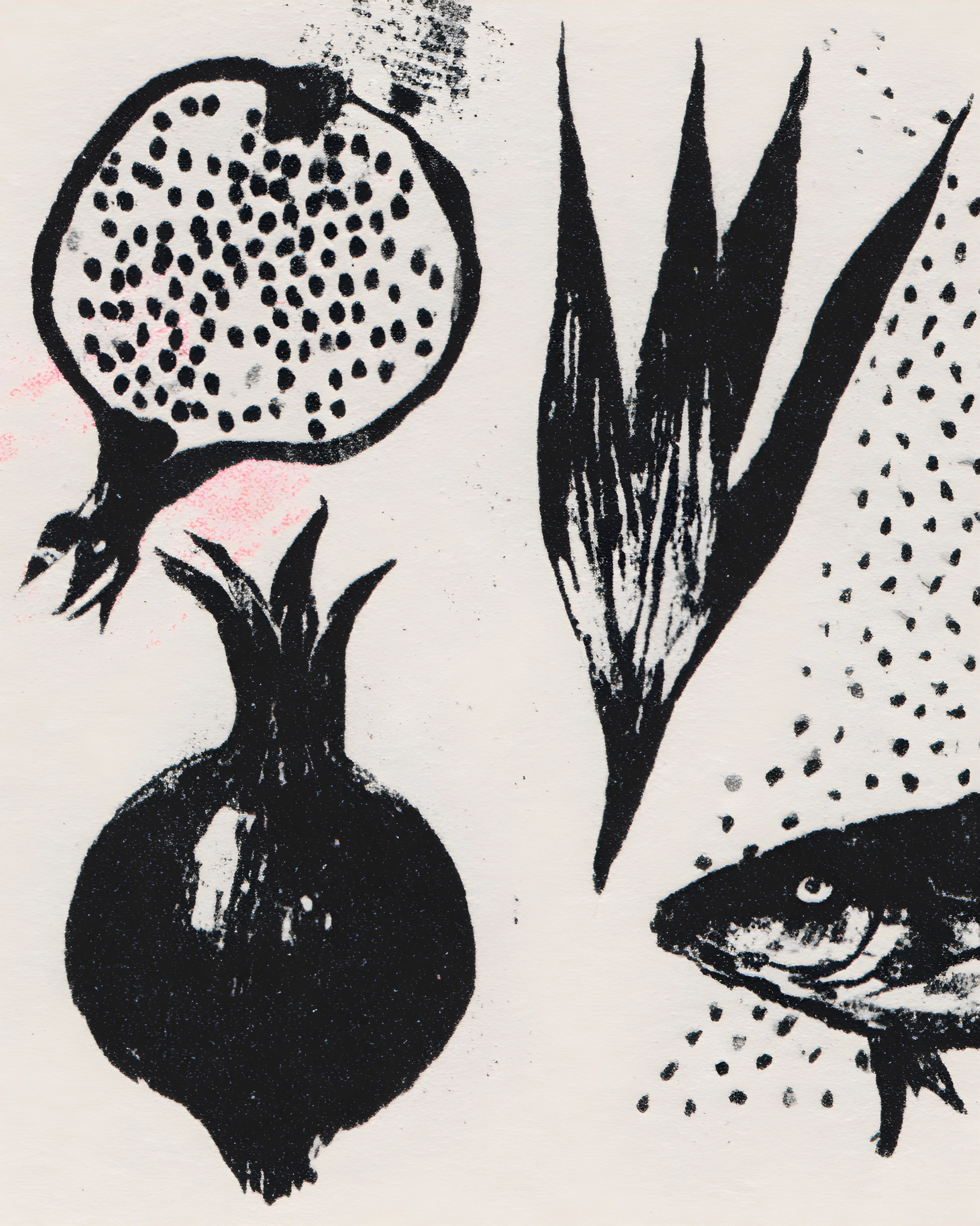 On the back shelf of my aunt’s tiny kitchen sat a pomegranate that never seemed to rot, glossy and heavy like it had swallowed a whole night sky. I used to sneak in after dinner, when the house was quiet, and cut it open just a little, counting the seeds like they were answers to questions I didn’t know how to ask yet. The more I stared, the more the shapes around it began to look alive: sharp leaves like whispers, a shadowy bulb of fruit like a held breath, and that half-hidden eye watching from the edge, as if the pantry itself was keeping score. One winter I finally drew it all down in thick black strokes, messy and smudged from my fingers, because I was afraid if I didn’t, the orchard in my head would dissapear by morning. And honestly, some nights it still feels like that eye is looking right back at me, waiting for the next seed to fall.