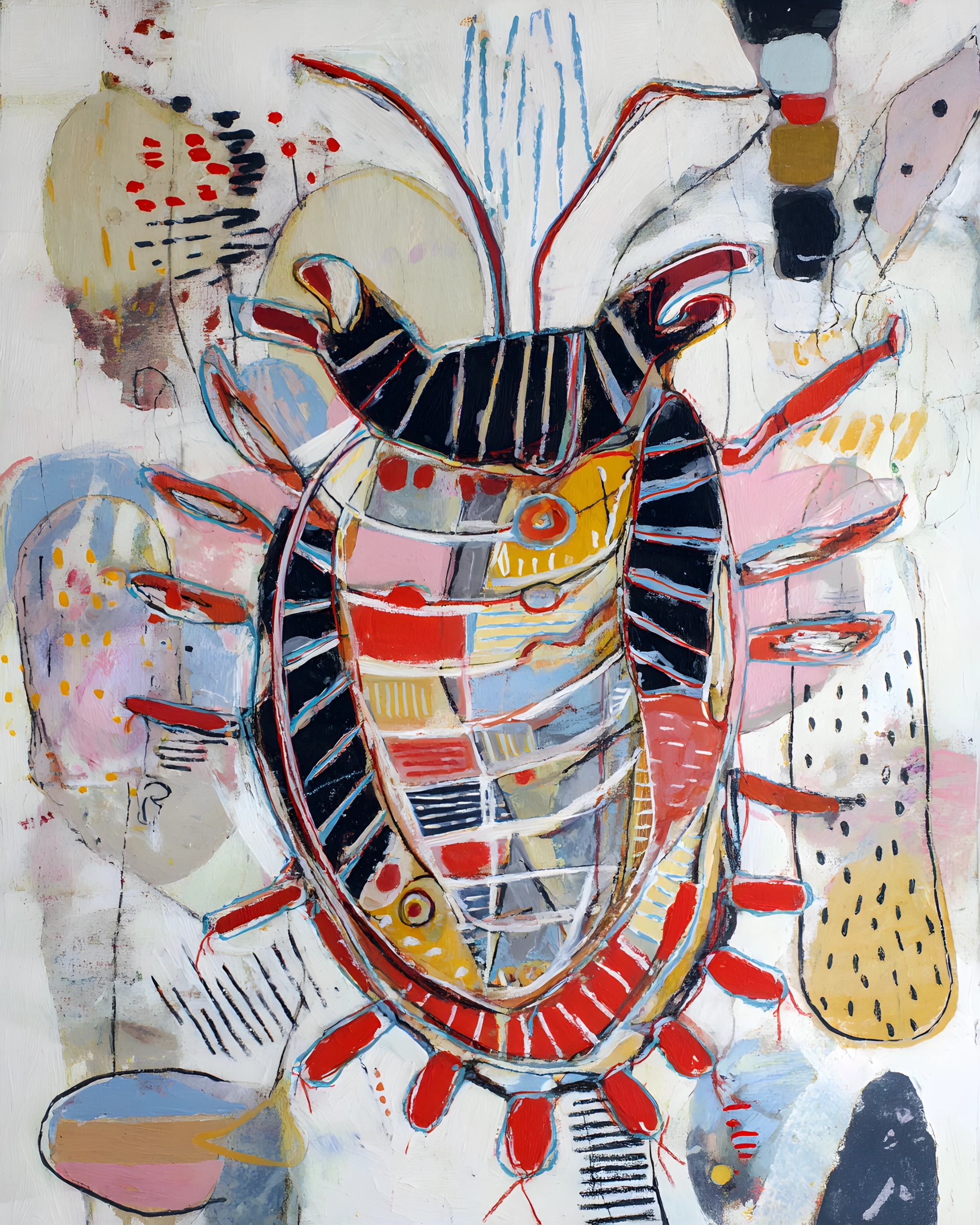 They found the beetle painted on the back wall of the old station, half covered by flaking posters and rain stains, like it had been waiting for someone to notice. Up close, its shell wasn’t a shell at all but a patchwork map of places no one talks about anymore: a red stripe for the diner that burned down, pale blue for the river that got rerouted, little dots for the hidden gardens behind locked gates. Someone had outlined it in bold black, then added those bright, petal-like marks around it, as if the beetle carried its own warning halo. Mara swore it was her brother’s doing, because he used to draw bugs whenever he was scared, and he’d gone missing the summer the trains stopped. She traced the crooked lines with her fingertip and felt the oddest thing, like the mural was humming, telling her to follow the colors, not the roads. So she did, even though it sounded kinda stupid, and the city started giving up its secrets one messy, beautiful clue at a time.