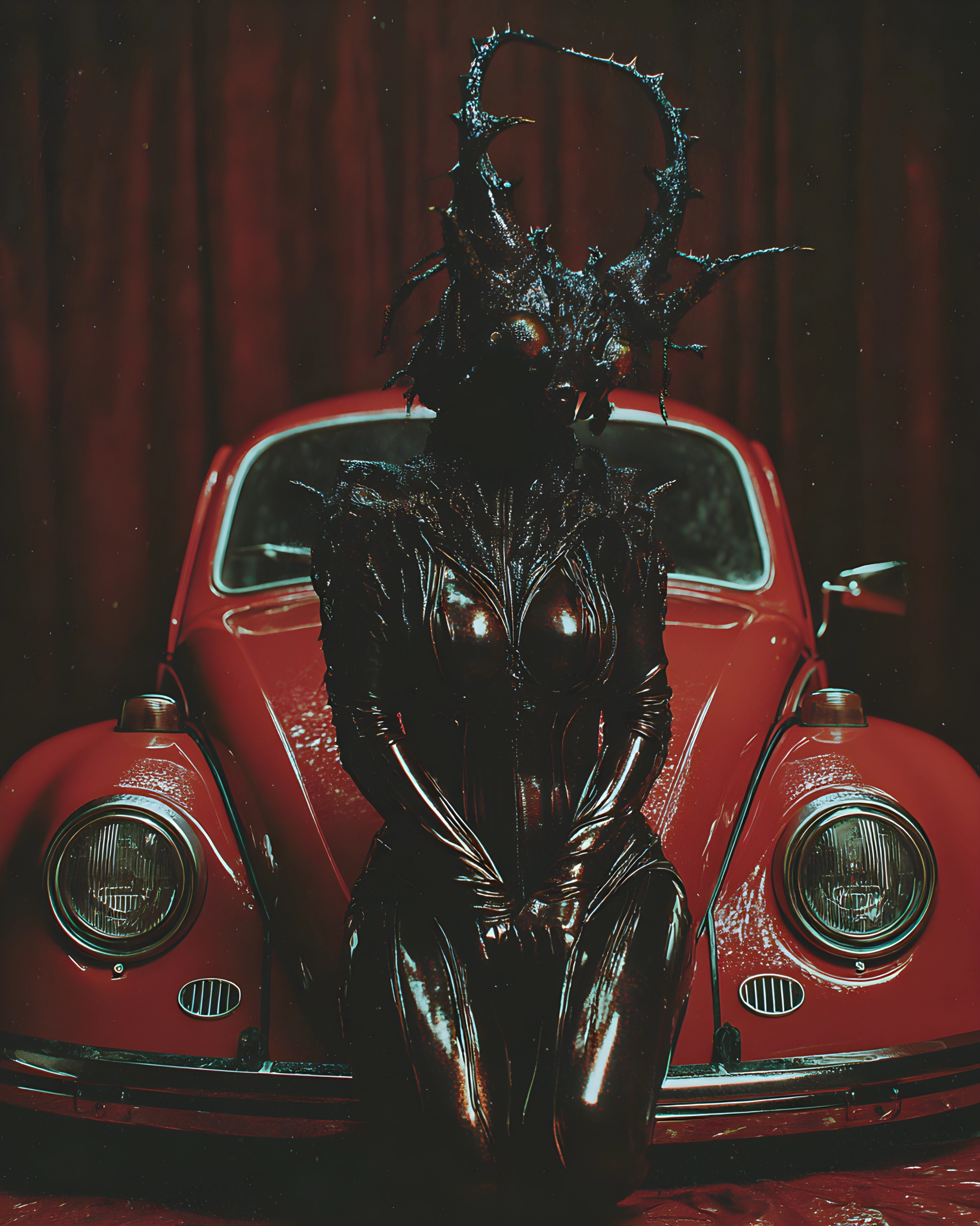 They called her the Thorn Queen long before anyone saw her face, mostly because she never let it be seen, not really. On rainy nights she’d park that little scarlet beetle at the edge of the old theater district, where the curtains in the windows looked like dried blood and the streetlights flickerd like they were scared. Folks swore the car had a heartbeat, soft thumps under the hood, and that the crown on her head was made from the same brambles that choked the abandoned gardens out back. I heard she made deals in whispers, trading rides for secrets, and if you lied she’d leave a black scratch on your name that never washed off. One night I watched her sit there, hands folded, perfectly still, as if waiting for someone who promised they’d come back. The rain kept falling, the red paint kept shining, and for a second I thought the whole city was holding its breath, hoping she’d finally drive away and let the past stop following.